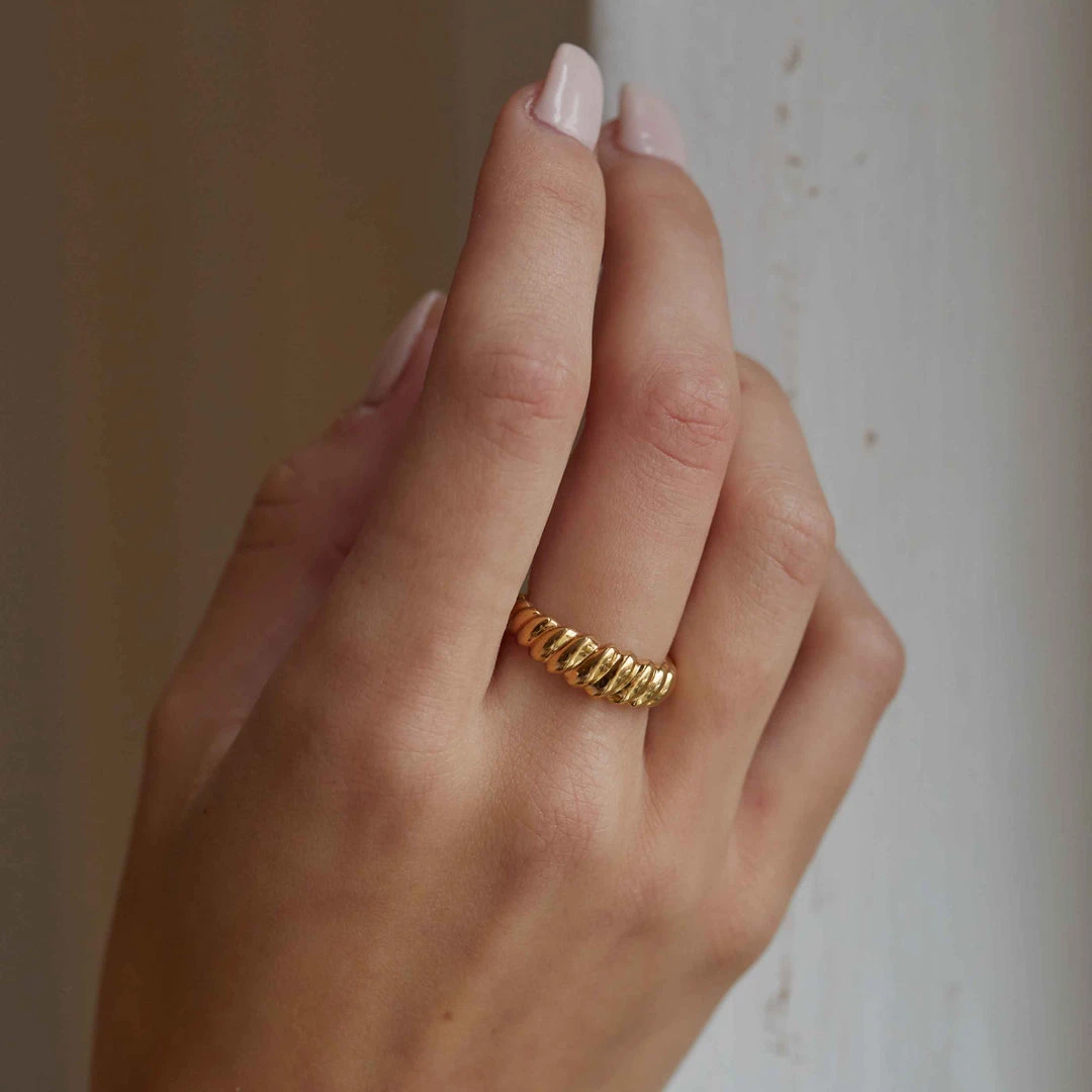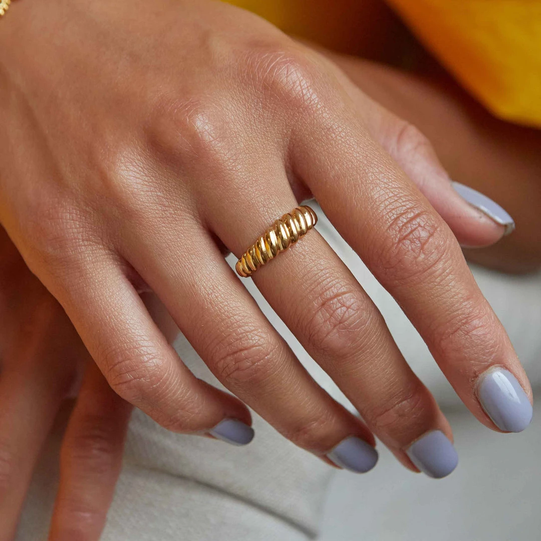 Our gold plated dome ring is definitely a ring stacking essential that you can wear with other chunky rings for a trendy luxe look or wear it alone for a chic Parisian vibe. Match this piece with our Rope Dome hoops or soften it up with a minimalist bracelet.
