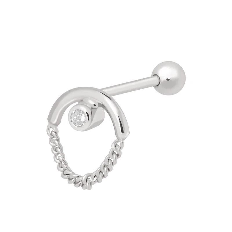 The perfect barbell to join your A&M ear party. The classic design with an edge you have all been waiting for. The Arched Diamond Chain Barbell Earring in Silver is sure to be your new favourite piece. The perfect versatile piece which can be worn from your helix to your lobe, meaning the stacking possibilities are endless. You’re welcome. Made from Sterling Silver.
