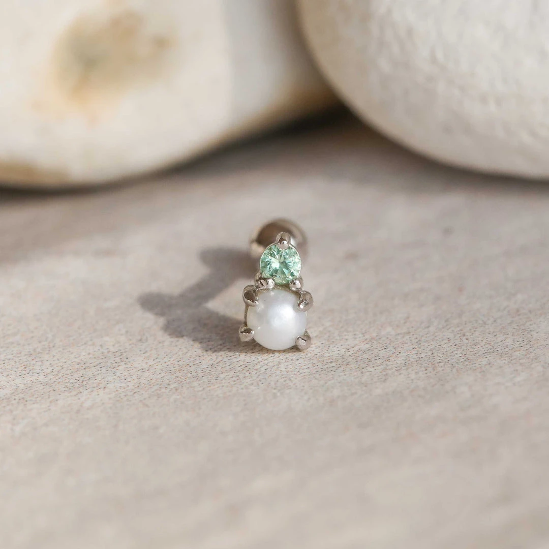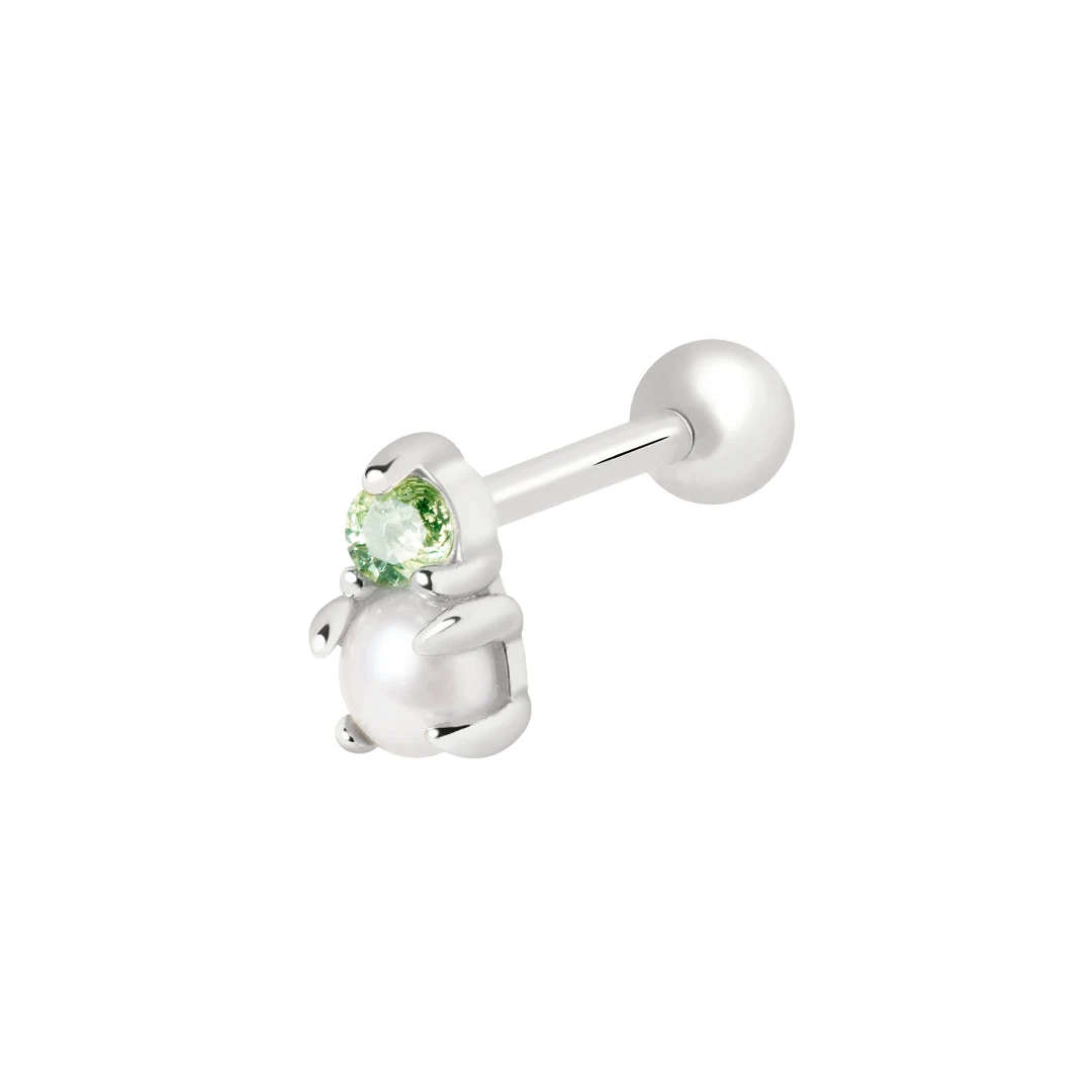 Give your piercings the pearls they deserve with the Gleam Barbell in Silver. Featuring a pearl inlay with a sparkling sage green cubic zirconia above, this barbell is a chic way to draw (much needed) attention to your piercings. Wear with our Gleam Huggies & our Harmony Aventurine Necklace for a colourful Serene Collection look.