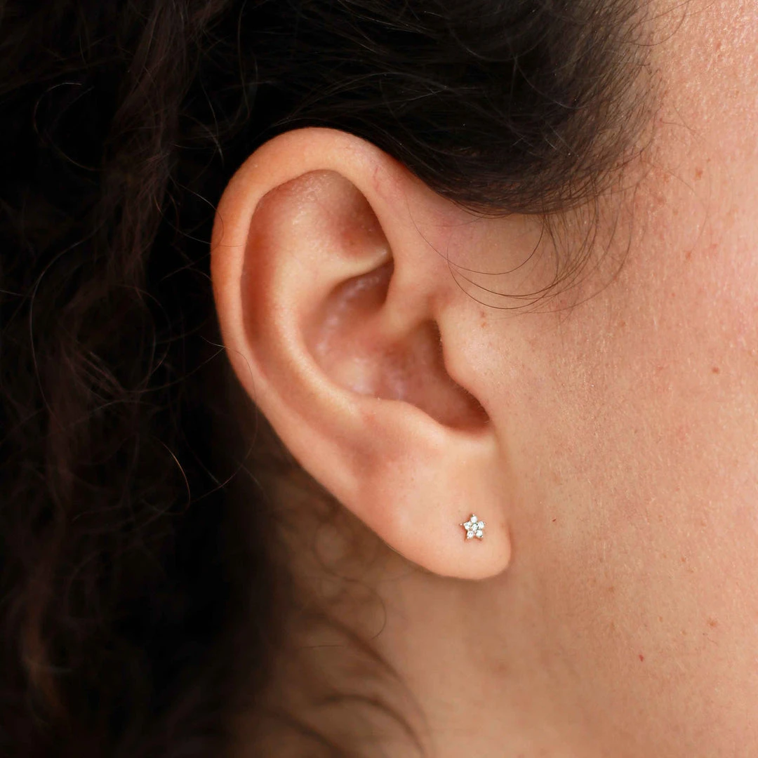 Starry starry day to night with the Jewelled Star Barbell in Rose Gold. Made for those special occasions and everyday life. Shimmering cubic zirconias adorn this delicate star, perfect for any constellation piercing. Made from Sterling Silver and 18k Rose Gold plated.