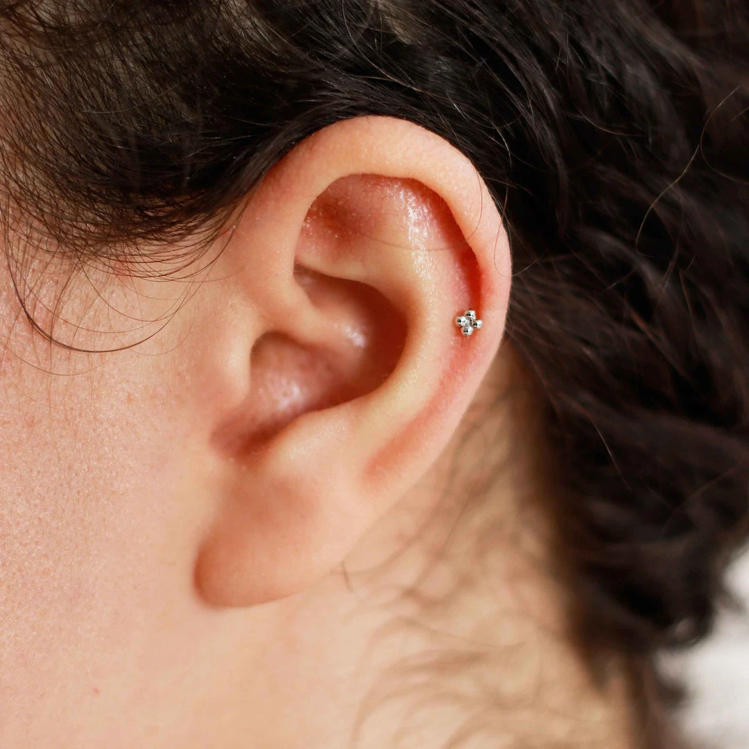 The perfect compliment to any ear combination. The Square Ball Barbell in Silver oozes chic elegance and is a dreamy accompaniment to any cartilage hoop. Designed for healed piercings and made from Sterling Silver and Rhodium plated.